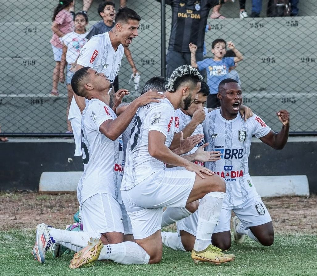 Jogadores do Ceilândia festejam gol da vitória sobre o CapitalCréditos: Divulgação / Ceilândia